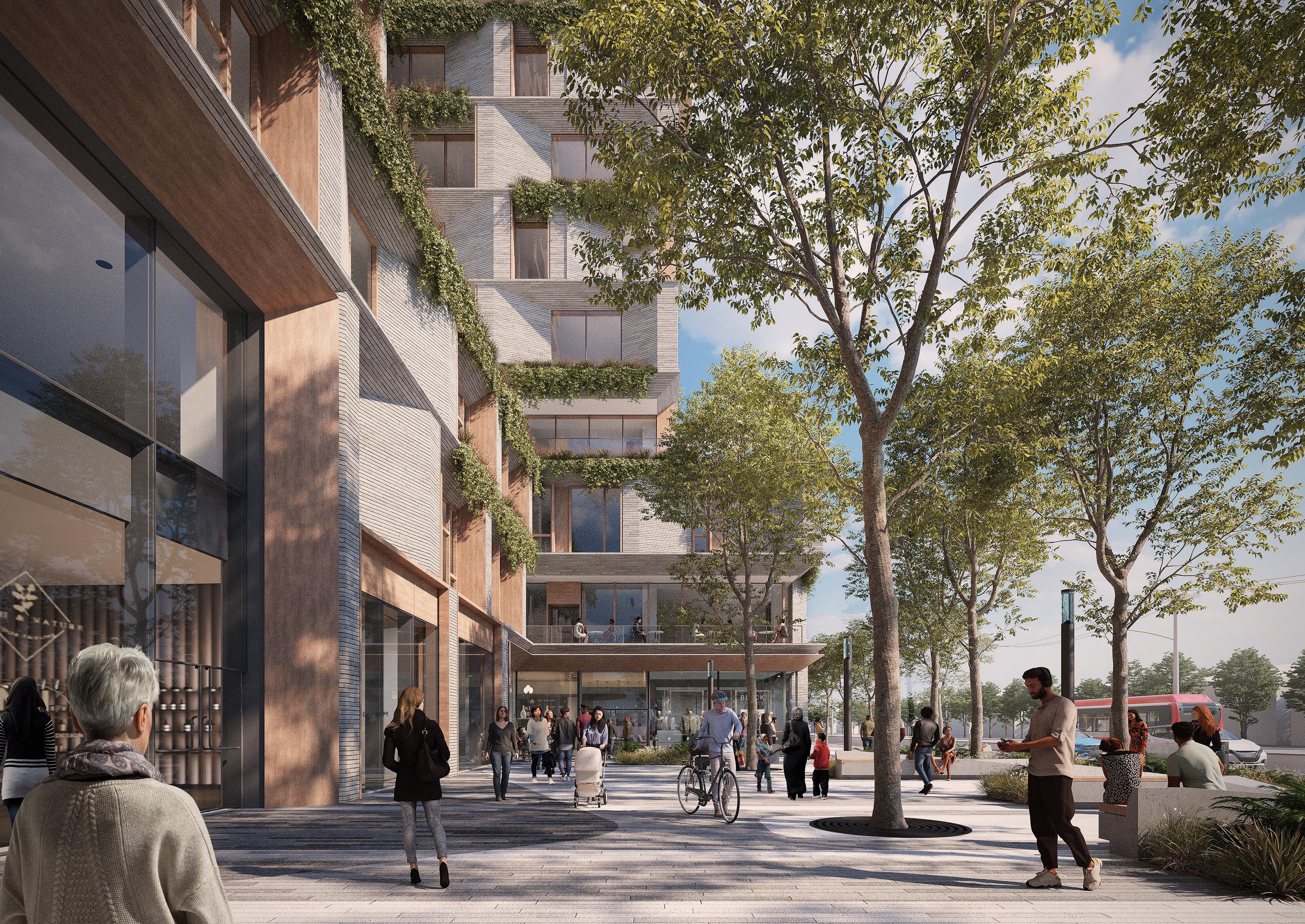 The Lawrence East transit-oriented community fosters a vibrant, walkable neighborhood along the Scarborough Subway Extension. By creating inviting public spaces, we have reshaped a car-dependent area into a family-friendly landscape that celebrates the pedestrian experience.