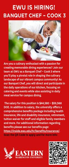 Display ad copy and camera-ready ads are due by 5 p.m. on the 1st of the month for the following month’s issue. Call 509-242-7752 for more information.