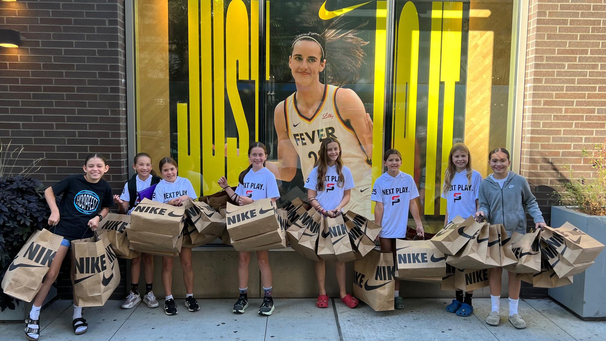 Shoes 2 Play is a team of young basketball players who spend their off time shopping at the Nike store for shoes and socks to donate to students like themselves.