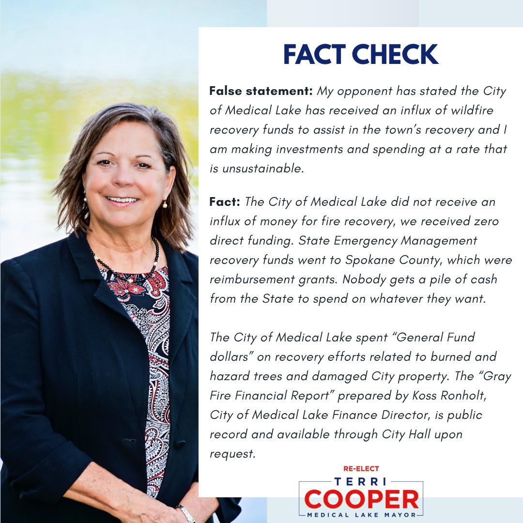 I urge my fellow citizens to cast their vote for Mayor Terri Cooper — a proven leader with the heart, courage, and vision to lead Medical Lake into a brighter future.