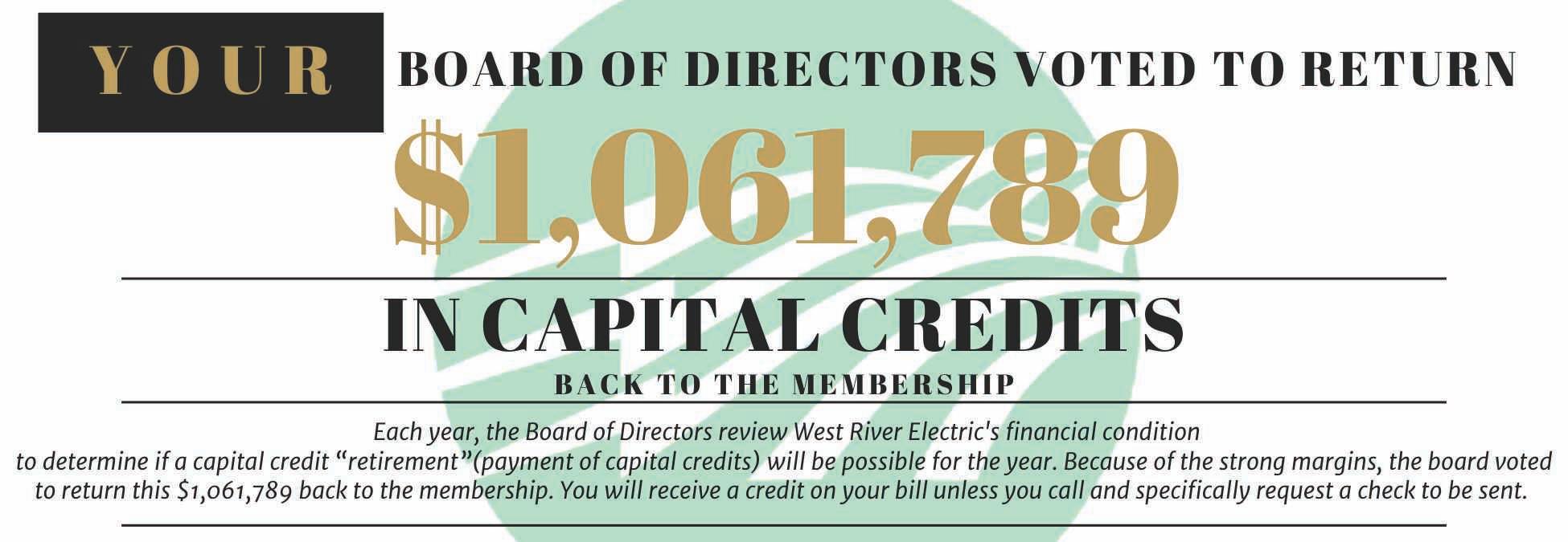 The Board approved retiring $1.0 million in capital credits again this year.