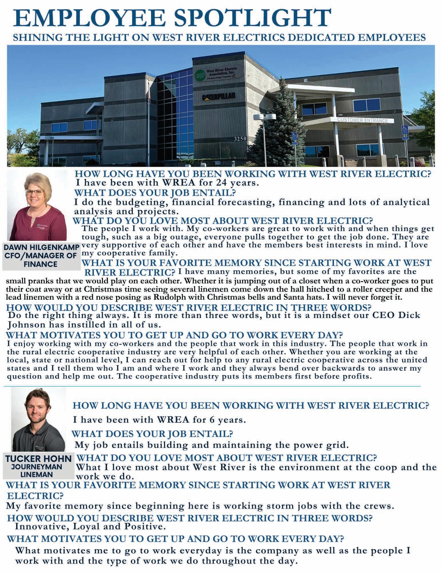 WEST RIVER ELECTRIC COOPERATIVE CONNECTIONS is the monthly publication for the members of West River Electric Association. Members subscribe to Cooperative Connections as part of their electric cooperative membership for $6 a year. West River Electric Cooperative Connections purpose is to provide reliable, helpful information to electric cooperative members on matters pertaining to rural electrification and better living. Nonmember subscriptions are available for $12 per year. Periodicals Postage paid at Wall, S.D., and at additional mailing offices. Postmaster: Send address changes to West River Electric Cooperative Connections, PO Box 412 , Wall, SD 57790-0412.