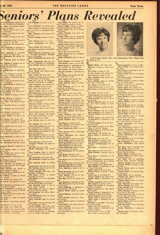 Nancy Caster will enter OU.. Jim Chase is going to Iowa State University. Diane Charles is planning to go to Nebraska Methodist Hospital School of Nursing. Mark Christensen will attend the NU. Mike Christiansen will also attend the University of Nebraska. Gene Church will go to Coe College. Matt Circo will work. Terry Clauff will attend Iowa State University. Sally Cockle will go to NU. Charles T. Cocks plans to attend the University of Wyoming. John Coe will go to Southern Methodist University at Dallas. Chris Comstock will attend OU. John Connelly will go to OU. Cece Corn will attend NU. Connie Cotton will go to NU. Bill Coughenour will go to Drury College in Springfield. Missouri. Ralph Coughenour plans to go to OU. Mark Covert will go to the University of Virginia. Maureen Crouch is going to OU. Tom Craig will enter NU. Tom Curran plans to go to the NU. Karen Curtis will attend the NU. Mary Lou Curzon will attend either Kansas University or NU. R ay Cusik will go to <YU. Pam Dalling plans to enter the NU. Bob Darling will enter OU. Susan Marie Dasher hopes to attend Scottsbluff Jr. College. D avid Davis will attend the NU. Don D eFord will attend the University of Colorado. Bob Dieterich will go to the NU. 1\larty Dieterich will attend NU. Gene Dinkel plans to attend the