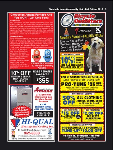 Choose an Amana Furnace And You WON’T Get Cold Feet! Quiet Comfort Many homeowners may think the best gas furnaces are not seen or heard. That’s why and Amana brand AMVM97 Modulating Variable-Speed Furnace is insulated for noise reduction. However, the real secret to its unobtrusiveness is that it strives to operate on low capacity as often and as long as possible and, therefore, produces as low as 25% of the normal high-fire and circulating blower sound generated by furnaces with multi-speed motors. Energy Efficiency Energy efficiency equates to cost savings. A gas furnace’s efficiency rating can primarily be determined by two factors: its AFUE rating (Annual Fuel Utilization Efficiency), which indicates what percentage of each dollar of natural gas purchased is actually used to heat your home; and the type of blower used in the furnace. This Amana brand Modulating, Variable-Speed Furnace offers 97% AFUE, as opposed to lower ratings of less efficient gas furnaces. Its variablespeed blower can improve its efficiency rating and enable the furnace to maintain consistent warmth in low-heat capacity mode without • 10 Year Parts Included inefficient high-heat surges associated with single speed • 10 Year Labor Warranty gas furnaces. Available