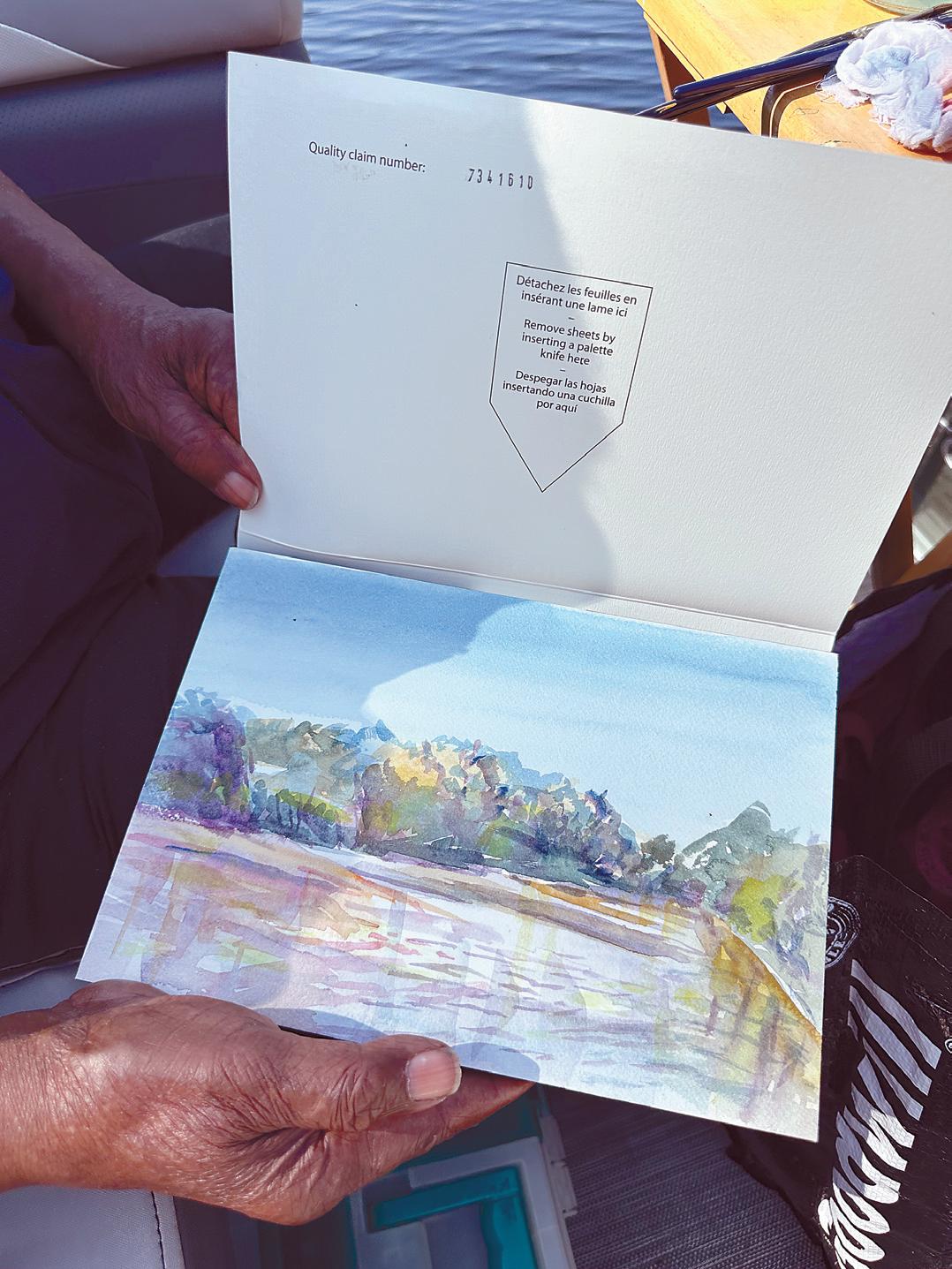 Sheppard displays one of the plein air watercolors he painted during an Erie Canal boat excursion.