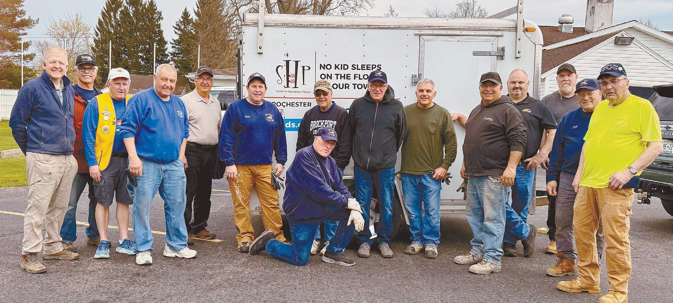 Members of the Brockport Lions Club together with the Lions Club of Chili, Moose Club of Churchville, and other volunteers, worked together on April 26 building beds. The service clubs partnered with Sleep in Heavenly Peace (SHP) to prepare all the structural parts for the beds. Forty participants performed the prep work. They cut, sanded, drilled, assembled, cured, wrapped, and stored for shipment enough wood pieces and assemblies to make 35 twin or bunk beds for children in need from our area. These beds go to families complete with a mattress, sheets, comforter, and pillow. The mission of Sleep in Heavenly Peace is to have no child sleeping on the floor in our community.