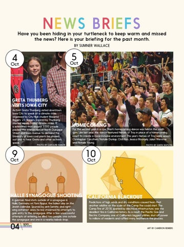 GRETA THUNBERG VISITS IOWA CITY Activist Greta Thunberg visited downtown Iowa City to speak at a climate strike organized by City High student Massimo Biggers ’23. Biggers, inspired by Thunberg, started weekly Friday climate strikes. It is estimated that around 3,000 people packed the intersection of North Dubuque Street and Iowa Avenue to demand the University of Iowa coal plants be phased out and to hear Greta and other activists speak.