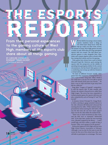 From their personal experiences to the gaming culture at West High, members of the esports club share about all things gaming. BY CAROLINE CHANDLER & ROSEMARY TIMMER-HACKERT ART & DESIGN BY XIAOYI ZHU