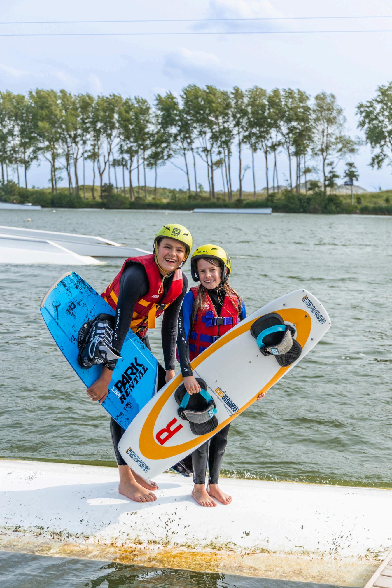 Lakeside Paradise is hét watersportparadijs voor actieve gezinnen. Bas en Elodie gingen er wakeboarden aan één van de 3 kabelbanen en dat lukte best goed! Materiaal kan je ook gewoon daar huren