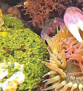 to support much life, so we moved on and found an offshore reef protecting a shallow area from the pounding surf, and that was rich with life. The best exploring is often in the shallowest water because snorkelling gets your nose right down on the bottom with the mussels and urchins, a close-up view that offers intimate details – scurrying crabs, flailing barnacles, open-mouthed mussels sucking water.
