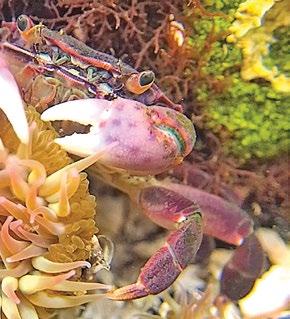 Crab and anemone in a tide pool.