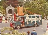 The Bookmobile, decorated with streamers and clowns, representing the West Vancouver Memorial Library in the 1984 Community Day Parade.