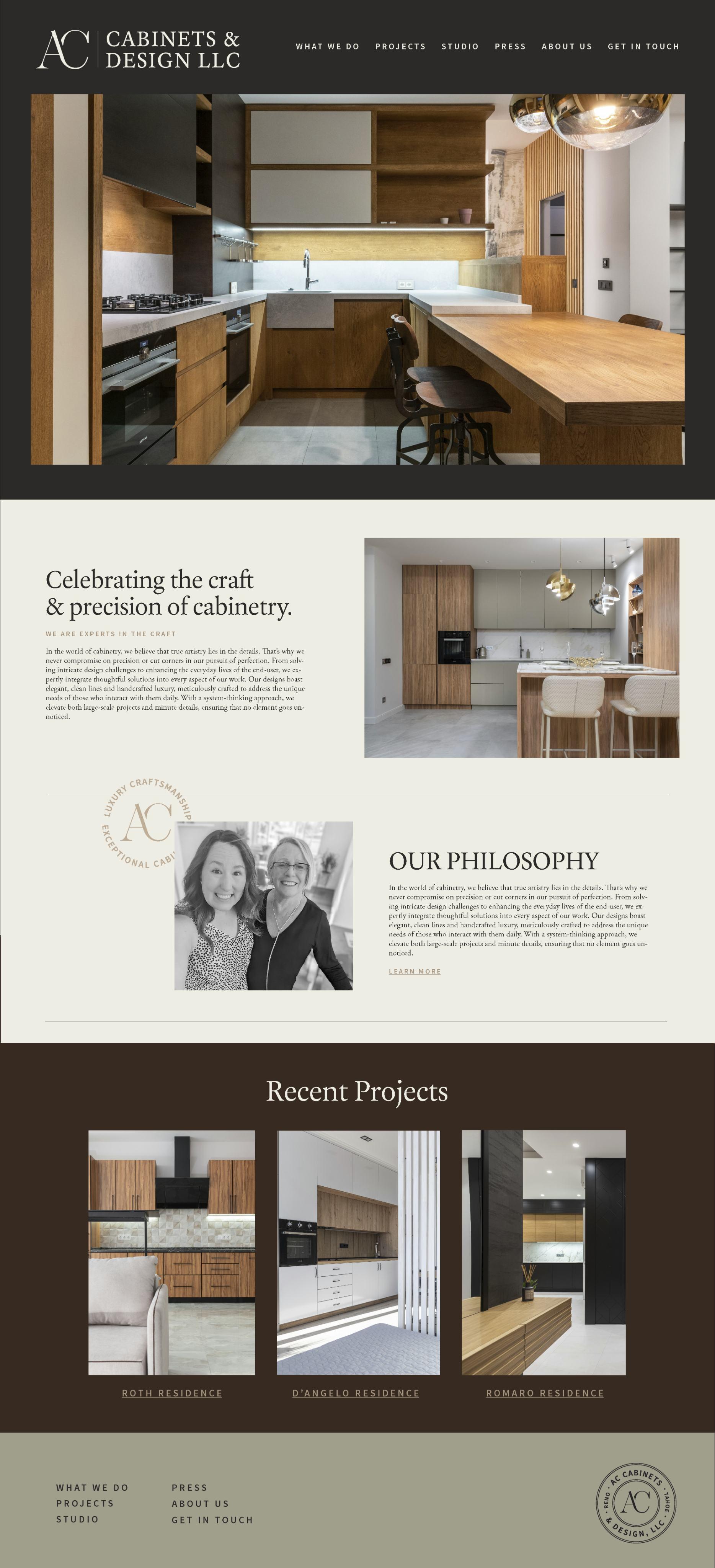 This example showcases a potential design for the AC Cabinets homepage. While it serves as a visual guide, it illustrates how our brand elements work together to create a cohesive and engaging user experience. By integrating our logo, color palette, typography, and imagery, this example demonstrates the seamless operation and visual harmony that our website should embody.