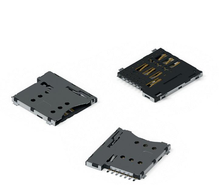 In designing the SIM card receptacle, special attention was paid to kink resistance, high durability and easy card detection. The brass contacts are gold-plated and the package is made of tin-plated steel. The contact resistance is around 100 mΩ. The operating temperature range is -20 to +70°C. The card connector is now available from stock and there are free samples for developers.