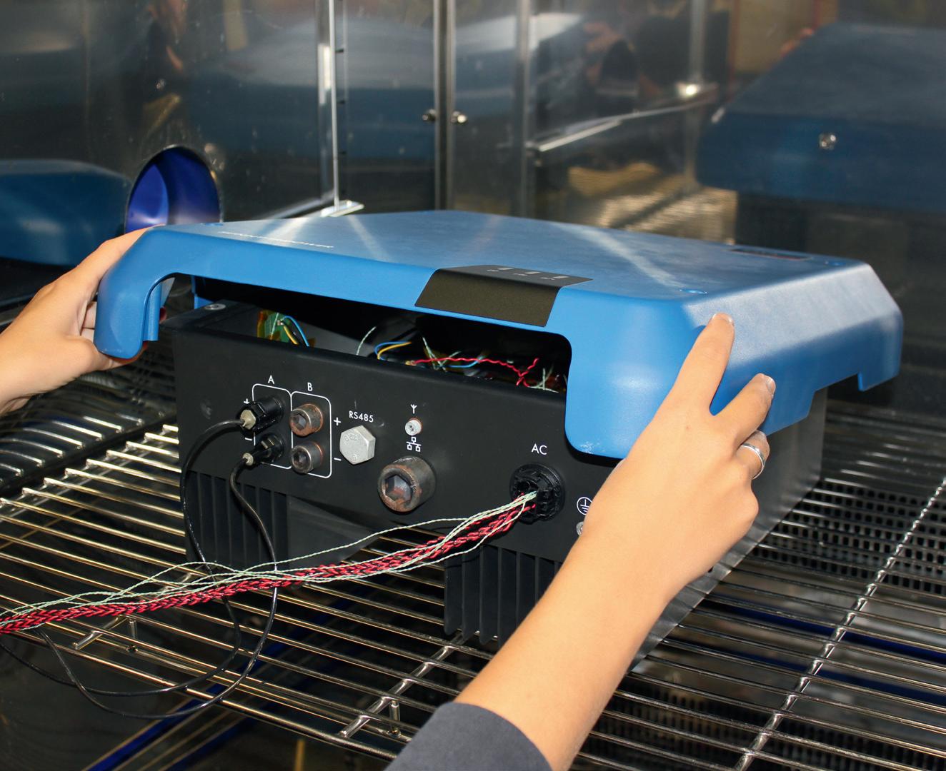 On test: Case of a photovoltaic inverter in a climate chamber at Fraunhofer IZM.
