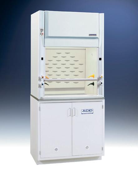 CE fume hoods are constructed totally of composite resin for good chemical resistance and can be supplied with or without an exhaust blower in standard or explosion-proof models.