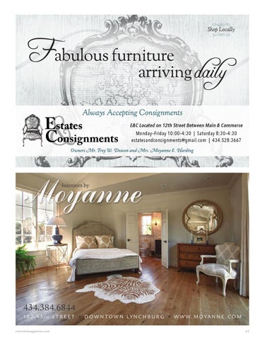 Always Accepting Consignments E&C Located on 12th Street Between Main & Commerce Monday–Friday 10:00–4:30 | Saturday 8:30–4:30 estatesandconsignments@gmail.com | 434.528.3667