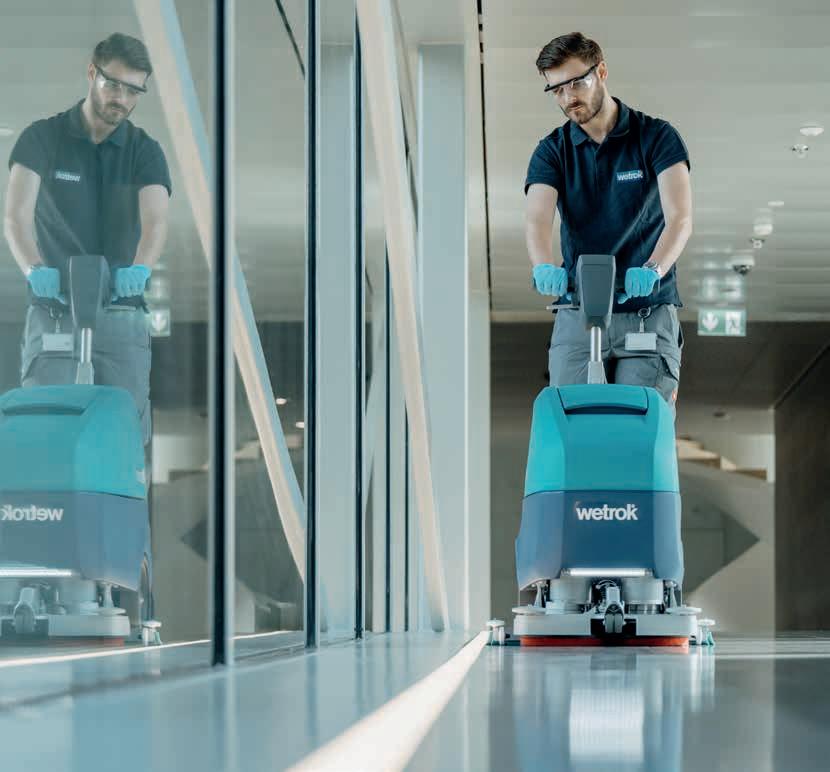 Die Maschinen müssen blitzblank reinigen, dürfen nicht zu laut sein und müssen in den Aufzug passen. Die Wetrok Reinigungsmaschinen schätzen wir, weil sie über eine solide Arbeitsbreite verfügen und doch sehr wendig und einfach zu manövrieren sind.