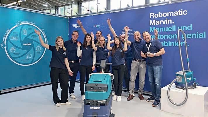 Mit einem neu gestalteten Messestand hat Wetrok die Besucher in einer einladenden Atmosphäre empfangen. Das kompetente und freundliche Standpersonal sorgte mit hervorragender Beratung und schmackhafter Verköstigung für gute Laune und zog zahlreiche Interessenten an den Stand in der Halle zwei. Die Produkte wurden ansprechend auf Podesten präsentiert, während der Robomatic Marvin seine Vorzüge auf einer vorbereiteten Fläche zeigte. Produktvorführungen fanden auf Anfrage statt, und die Besucher konnten dabei Wetrok M&Ms oder Popcorn geniessen.
