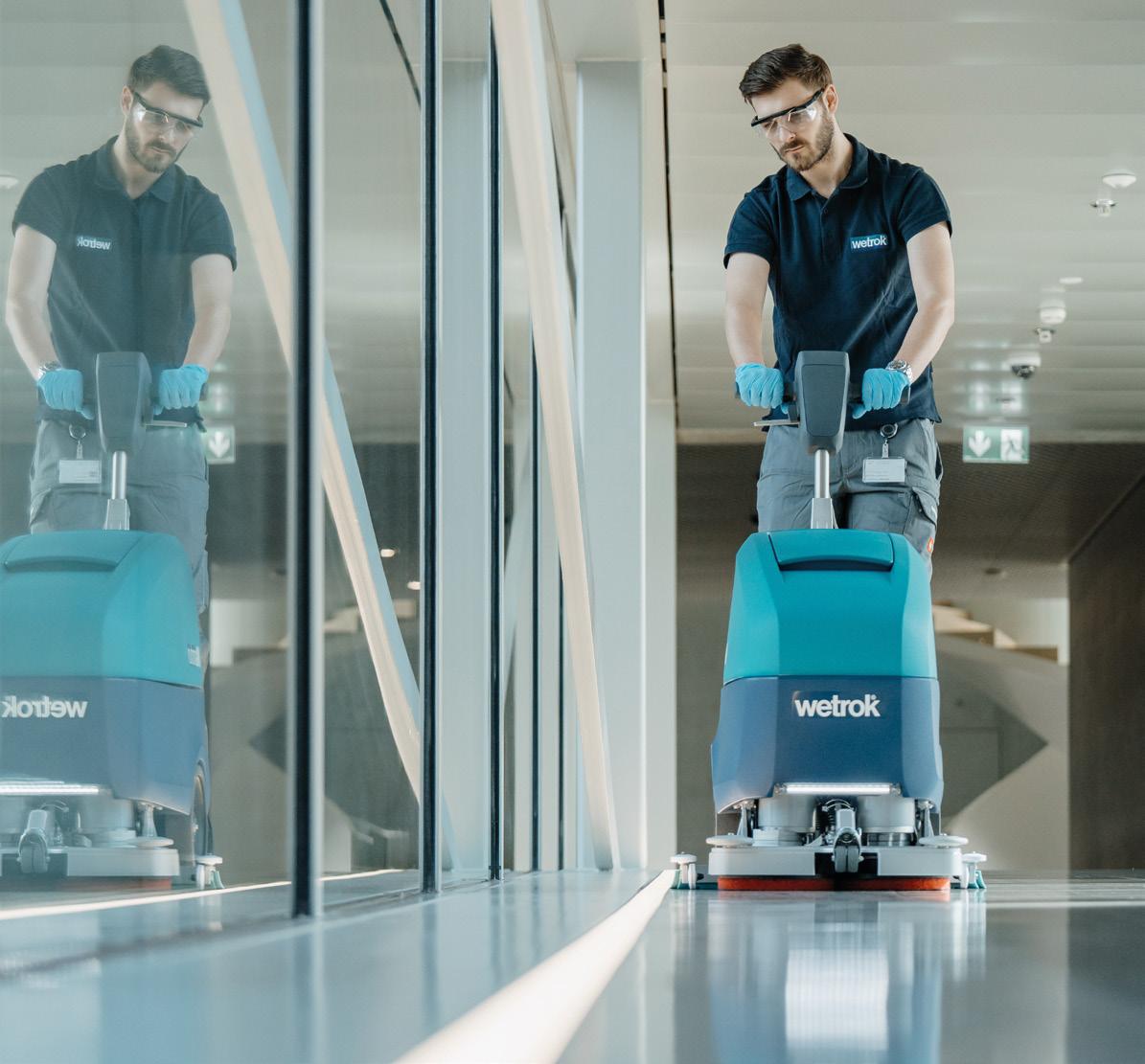 Les machines doivent assurer un nettoyage impeccable, elles ne doivent pas être trop bruyantes et doivent pouvoir rentrer dans l'ascenseur. Nous apprécions les machines de nettoyage Wetrok, car elles ont une largeur de travail suffisante tout en étant très faciles à manœuvrer.