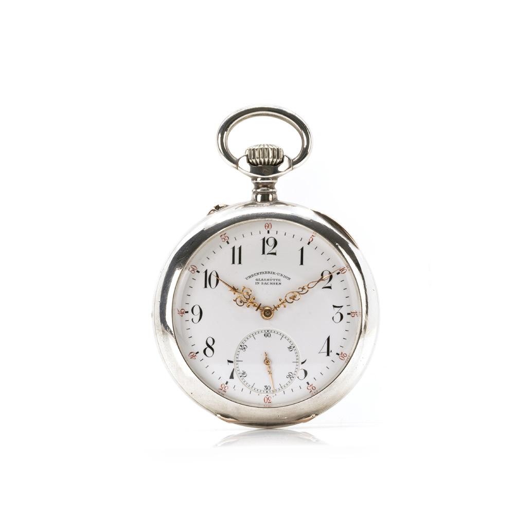 England, London, 1785, Schlüsselaufzug, vergoldetes Uhrwerk mit Zylinderhemmung, Kette und Schnecke, fein gravierter Unruhkolben, Diamantdeckstein, aufgeschraubte forale Platinenverzierungen, silberne Regulierscheibe, Gehäuse 925 Silber, punziert, Feingehalt, Stadtmarke, Jahresbuchstabe und Meisterpunze TC (Thomas Chawner), Übergehäuse 925 Silber, punziert, weißes Emaillezifferblatt mit schwarzen, römischen Ziffern und arabischer Minuterie, Zentralsekunde mit arabischer Minuterie, gebläute Stahlzeiger, signiert ‘Robert Ward London’ und ‘HF’, seitlicher Hebel zum Stoppen der Zentralsekunde, Werk graviert und nummeriert ‘Robt. Ward Abchurch Lane London 16496’, außerdem feine Darstellung des Flugballons der Mongolfier-Brüder auf dem Unruhkolben, Durchmesser 67 mm, Gewicht ca. 184,6 g, Funktion geprüft, gangbar, Zustand gut, Glas ergänzt, Kunststoff, Schlüssel anbei, Kopie des Kaufbelegs und Beschreibung anbei