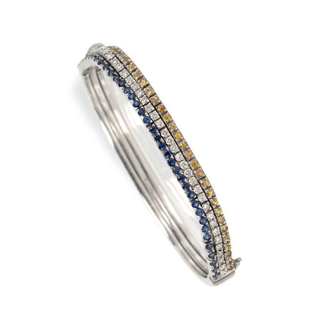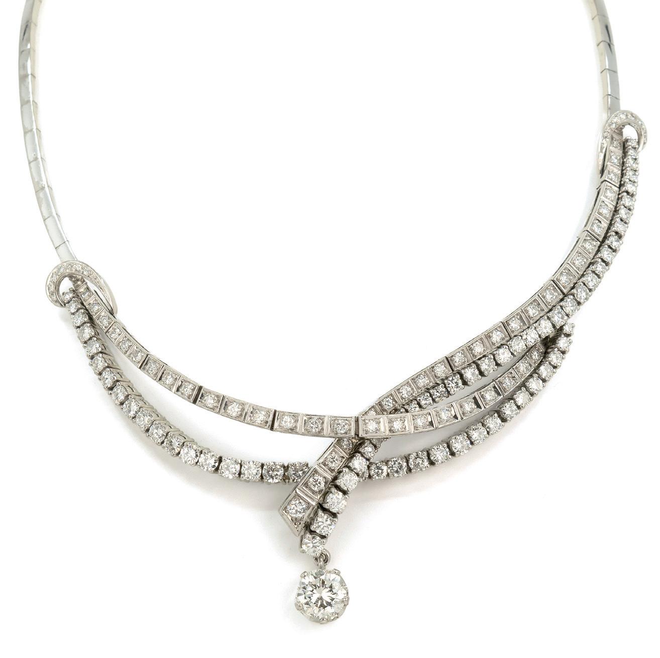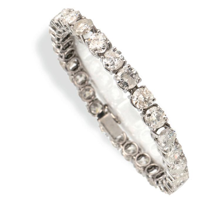 750 Weißgold, punziert, 28 Diamanten im Brillantschliff, gesamt ca. 19,09 ct, H-J, pi2-pi3, Länge 16,7 cm, Gewicht ca. 19,2 g