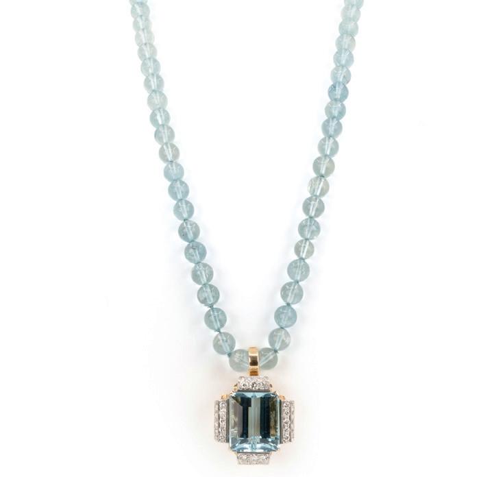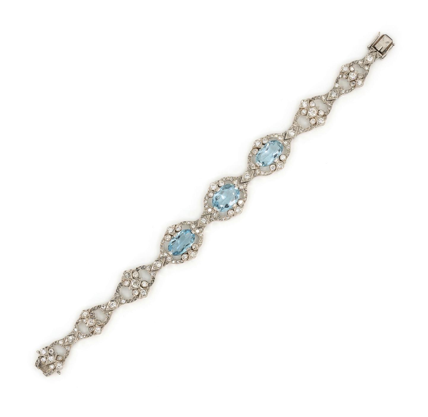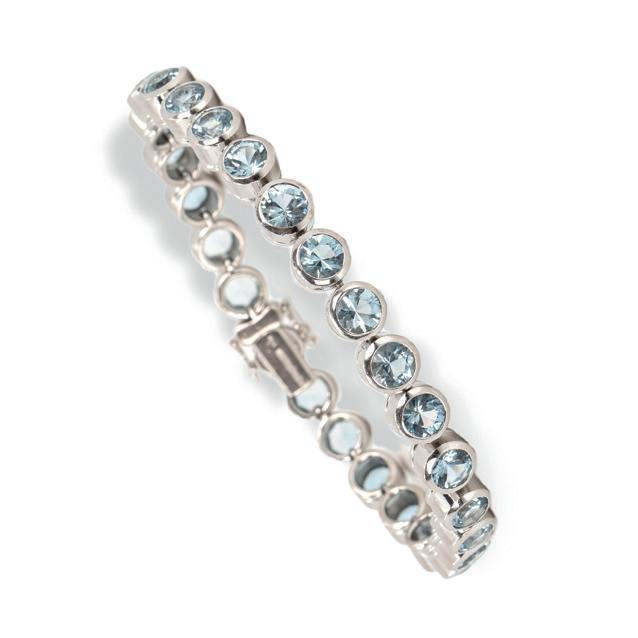 Georg Hornemann, Düsseldorf, 750 Weißgold, punziert, dazu Markenpunze, 26 Aquamarine im Rundschliff, gesamt ca. 11,70 ct, Länge 18 cm, Gewicht ca. 40,4 g, Aquamarine partiell mit minimalen Tragespuren