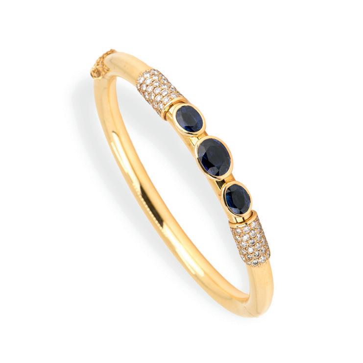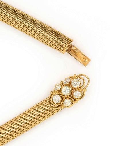 Chopard, Frankreich, 750 Gelbgold, punziert, dazu Markenpunze und Nummerierung, 5 Diamanten im Brillantschliff, gesamt ca. 0,20 ct, F, vvs, Länge 22 cm, Gewicht ca. 36,8 g, leichte Tragespuren