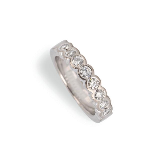 950 Platin, punziert, 17 Diamanten im Brillantschliff, gesamt ca. 3,10 ct, H, vvs, RW 55, Gewicht ca. 7,1 g