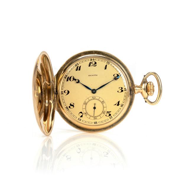 Jahr 1994, Automatik, Perpetual-Chronographenwerk, Tachymeter-Lünette, Stoppfunktion, 12-Stunden-Zähler, 30-Minuten-Zähler, kleine Sekunde, Brillantindizes, verschraubte Krone und Drücker, Individual-Nr. X505654 | Ref.-Nr. 16518 | Manufakturwerk Zenith El Primero, Gehäuse 18k Gelbgold, punziert, Durchmesser 40 mm, Original-Armband, Leder, Original-Faltschließe, 18k Gelbgold, punziert, Länge 17 cm, Gesamtgewicht ca. 120,9 g, Funktion gangbar, geprüft, Zustand gut, Flusen auf dem Zifferblatt, Tragespuren, Uhrenglas partiell zerkratzt, Zustand und Funktionalität durch unseren Uhrmachermeister geprüft, ohne Original-Box, mit Original-Papieren,