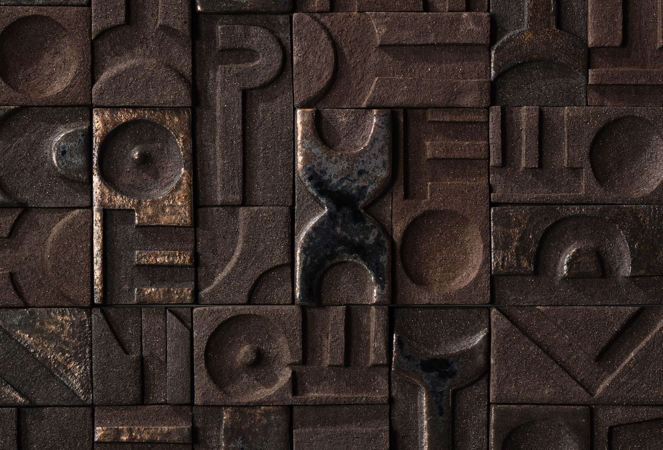Power Scripts is a series of handsculpted ceramic wall murals that transforms the contemporary Adinkra alphabet—a symbolic writing system created by Dr. Charles M. Korankye— into sculptural declarations of Black liberation. Carved directly into clay surfaces and assembled as relief compositions, each mural carries the phrase “Black Power,” rendered not in English but through this reclaimed script that bridges ancestral symbolism with contemporary Black expression. Through this act of translation, language itself becomes a form of cultural reclamation.