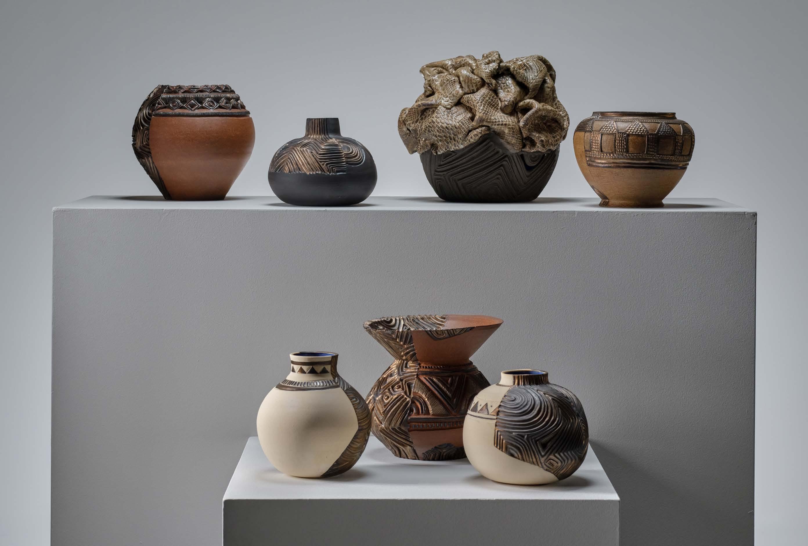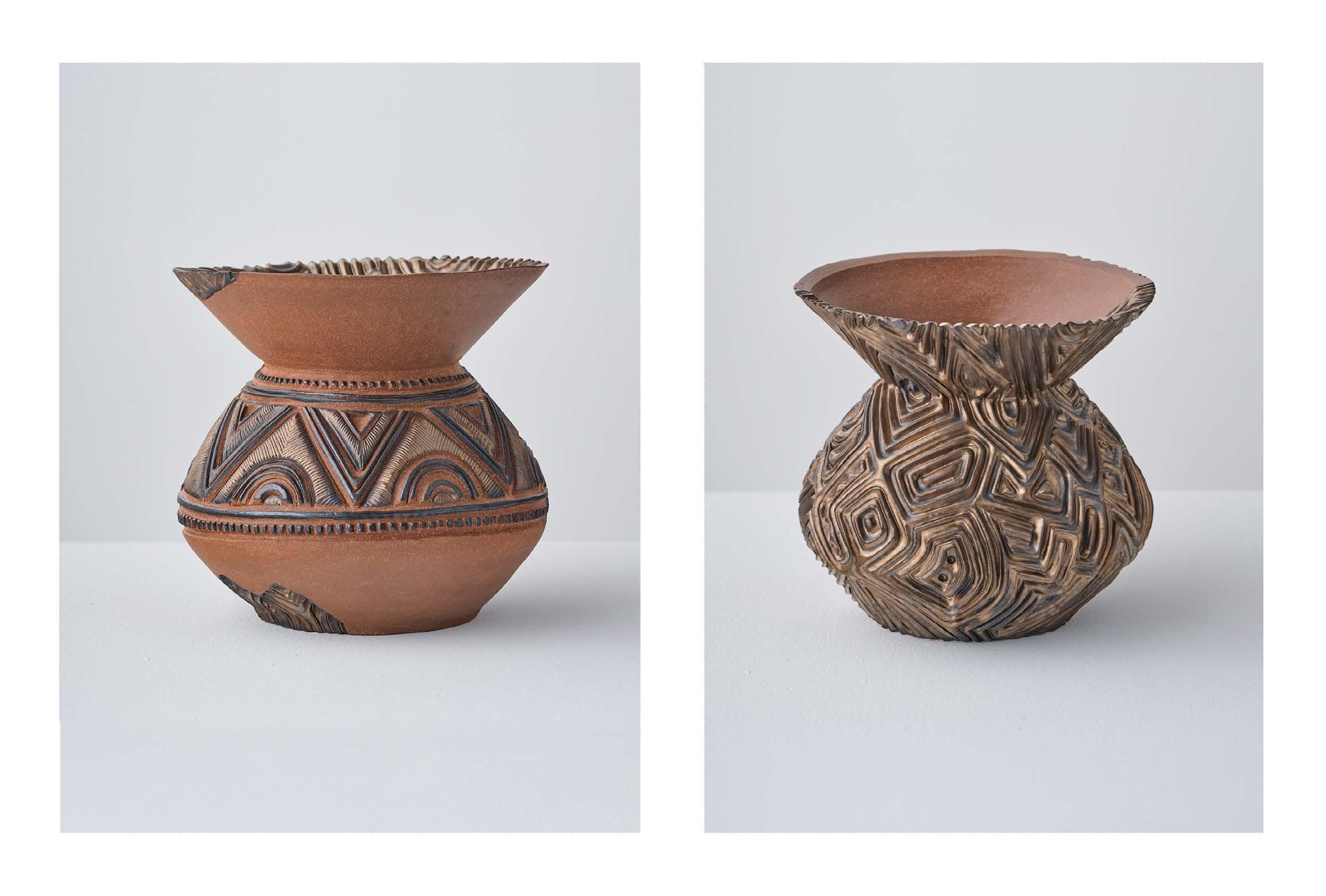 The series draws inspiration from archaeological drawings of pottery shards recovered from Port Royal, Jamaica following the devastating earthquake of 1692. Rather than focusing on what was lost, Barnett imagines each vessel as whole, completing the missing forms through her own carved interventions.