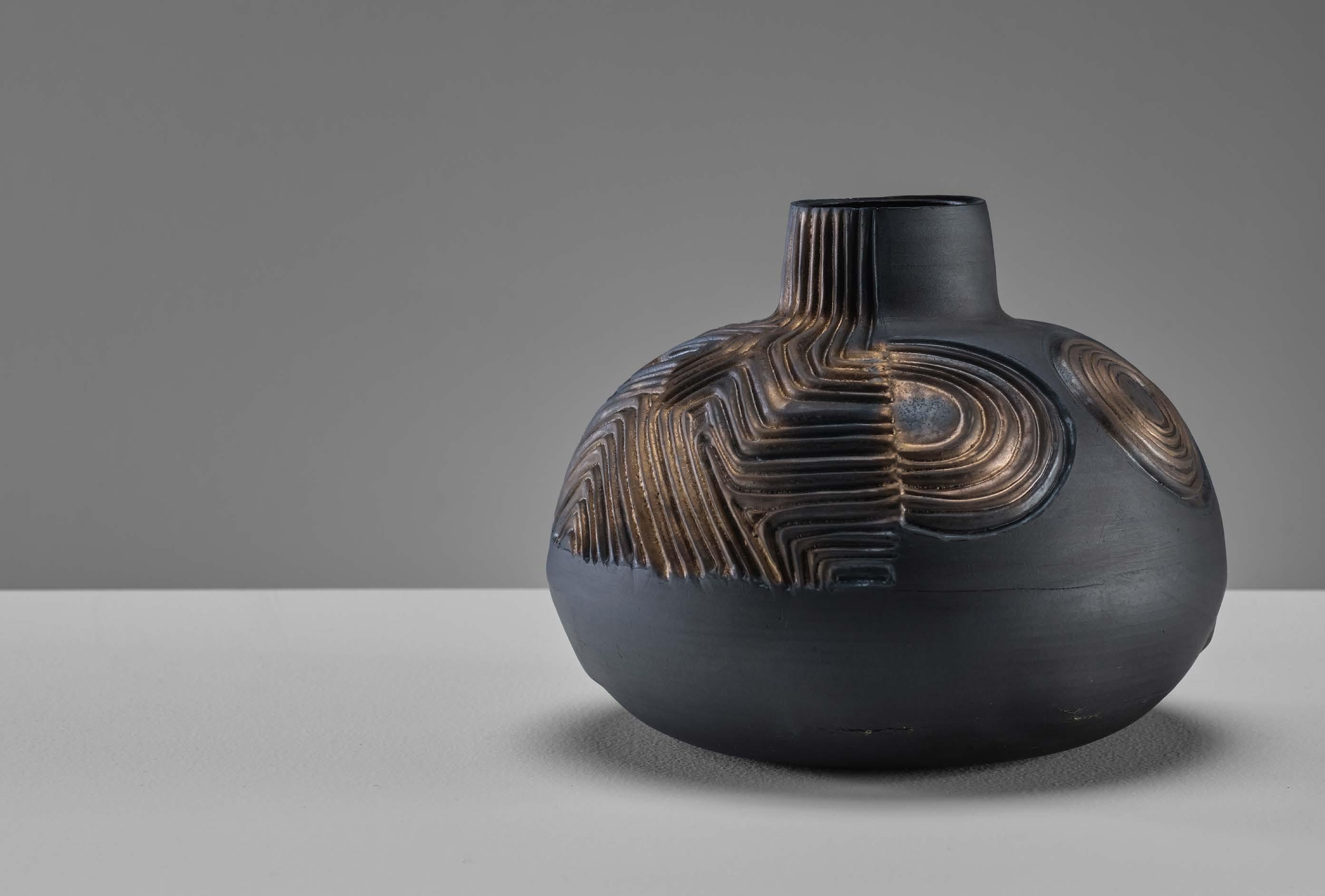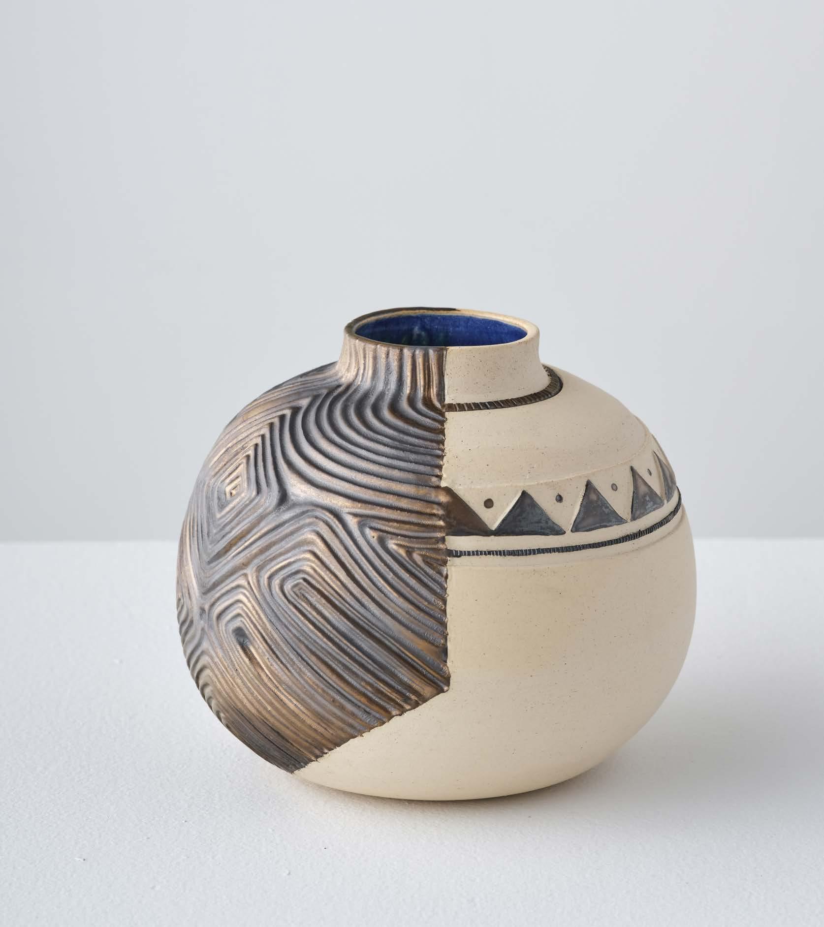 Wheel-thrown and often accented with gold, the vessels hold two temporal directions simultaneously—one rooted in ancestral form and the other reaching forward. Each object becomes a conversation with the past that proposes new possibilities for the future.