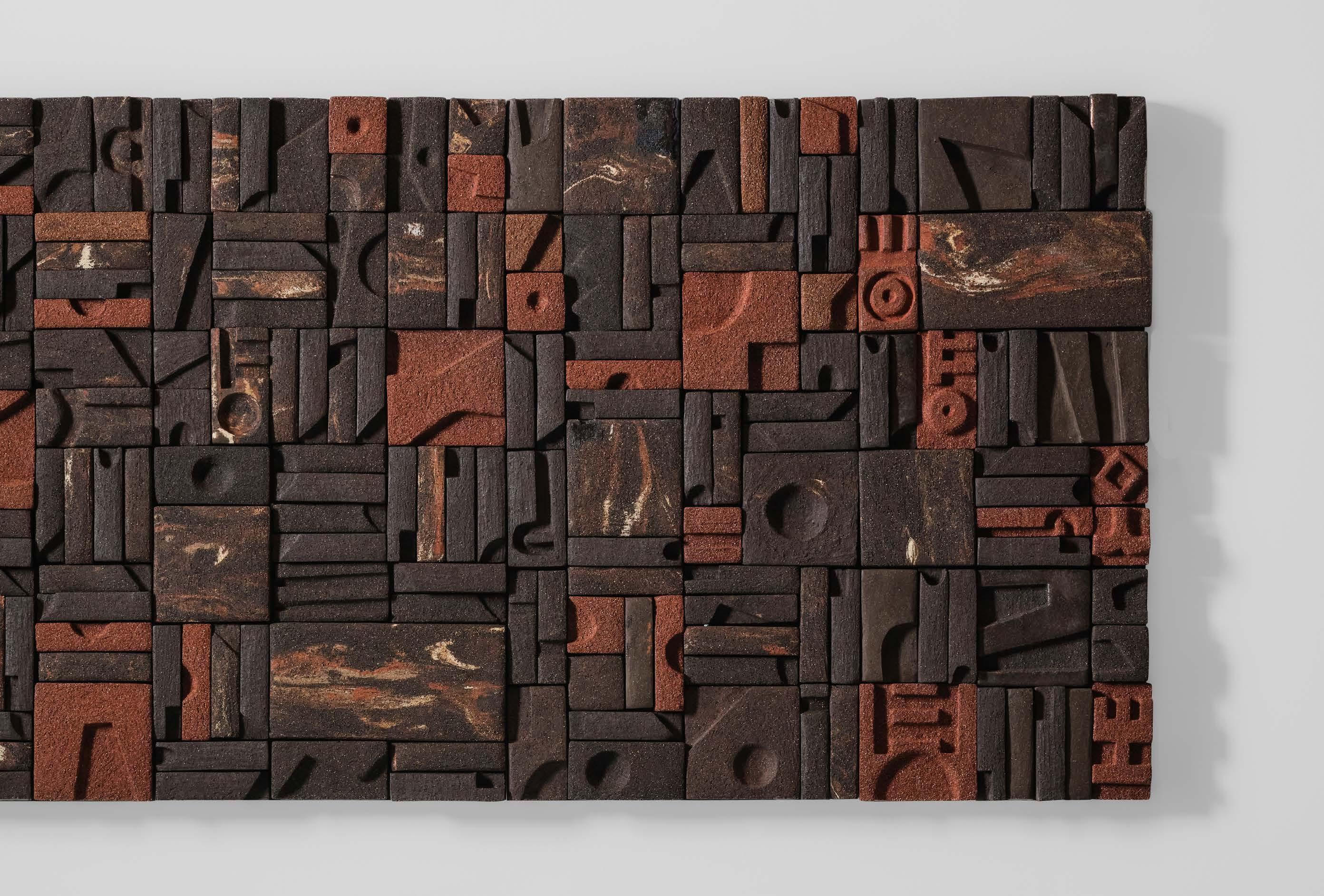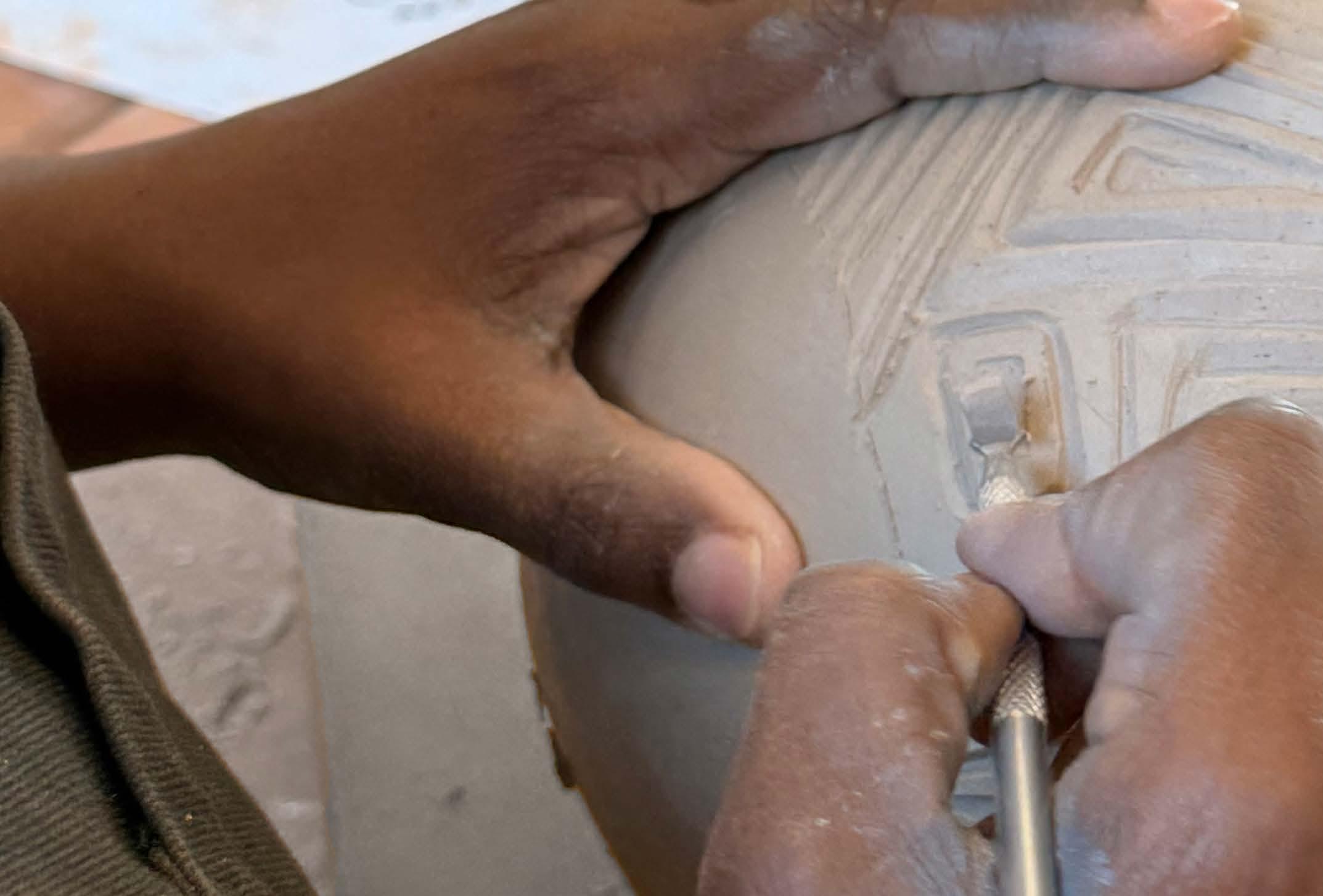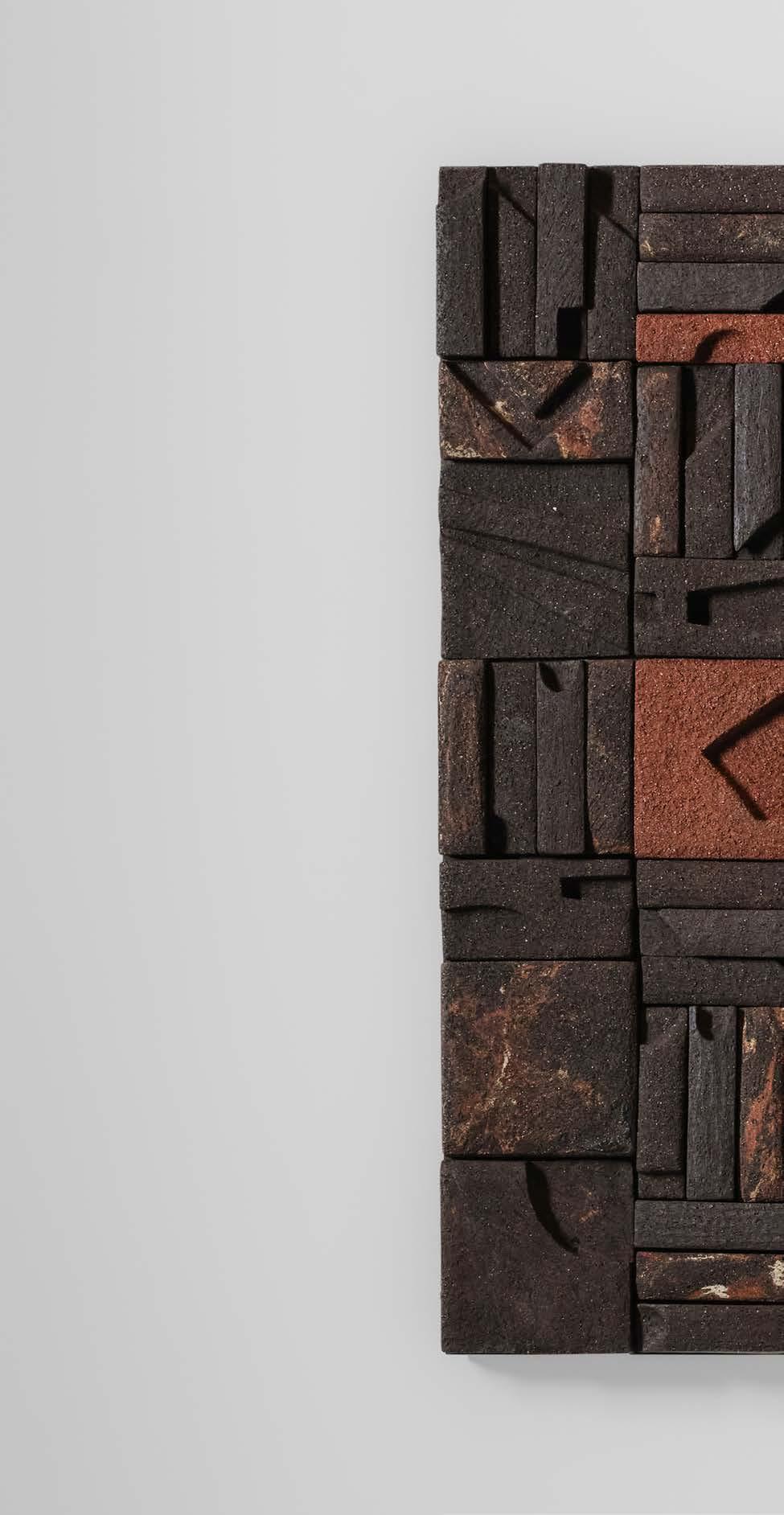 The carved clay surfaces draw inspiration from the façades of Nubian and Hausa architecture, where walls were historically inscribed with proverbs, blessings, and protective phrases meant to guide and safeguard communities. Barnett reimagines this architectural lineage through ceramic tile murals that transform clay into a vessel for memory, protection, and belonging. Words become structure; inscription becomes shelter.