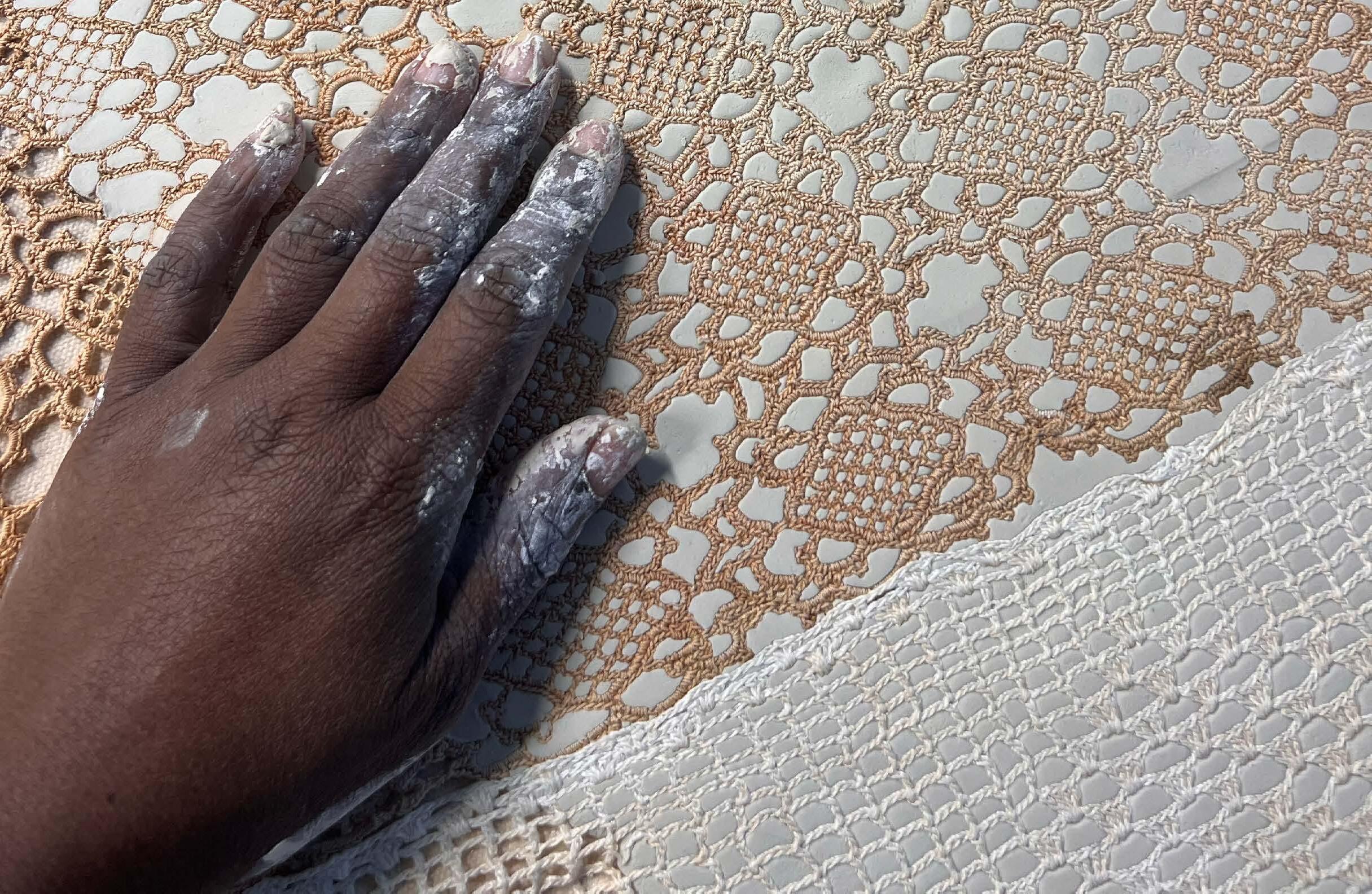 Illusions of Softness is a new body of ceramic vessels that reimagines lace doilies as symbols of resilience and cultural reclamation. Introduced to Caribbean homes as markers of European refinement, doilies were transformed by generations of Black women into treasured objects signifying care, dignity, and pride within the home. Barnett draws on this history through a personal lens, recalling how her mother brought a doily from St. Vincent and the Grenadines when she migrated to the United States in the 1960s.