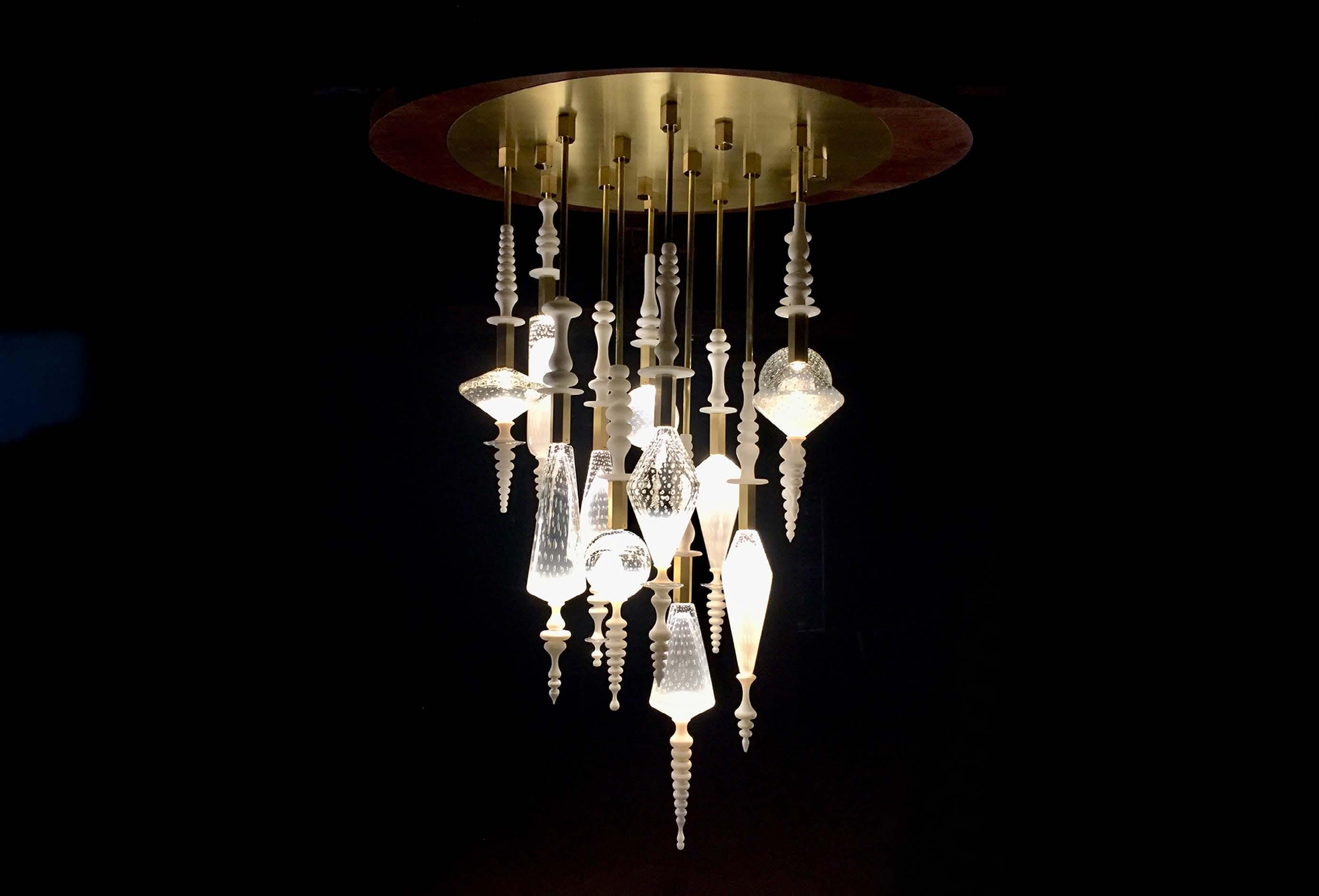 blown glass, bronze, LED
