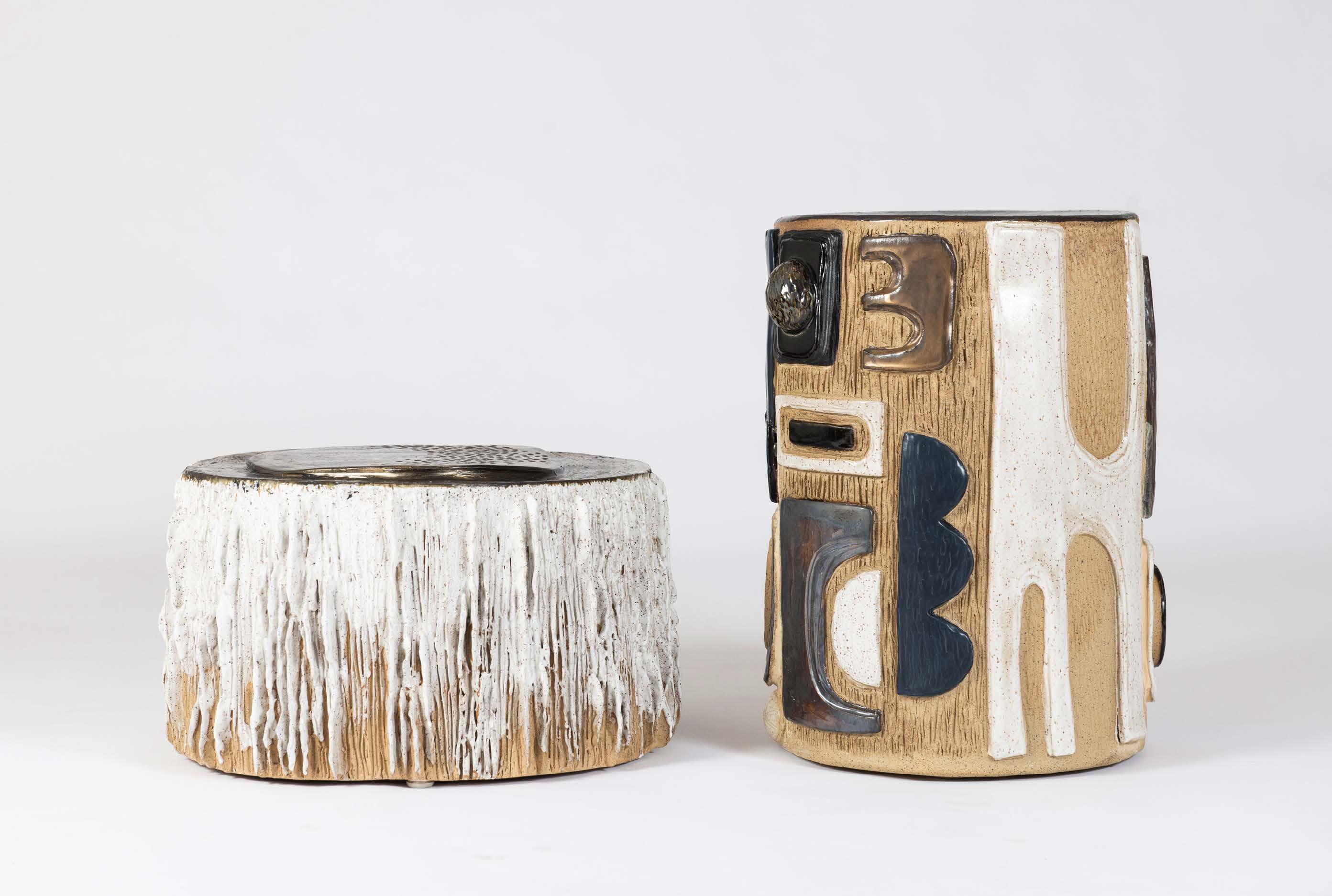 Trish DeMasi creates abstract ceramic works that merge organic biomorphic shapes with structured geometric forms, drawing inspiration from nature and architecture. Her sculptures and vessels begin as drawings or paintings before being hand-built in various clay bodies, meticulously carved, and glazed in a refined palette. With over 20 years as a creative director in advertising, DeMasi’s background strongly influences her approach, resulting in stylized, graphic interpretations rather than literal representations.