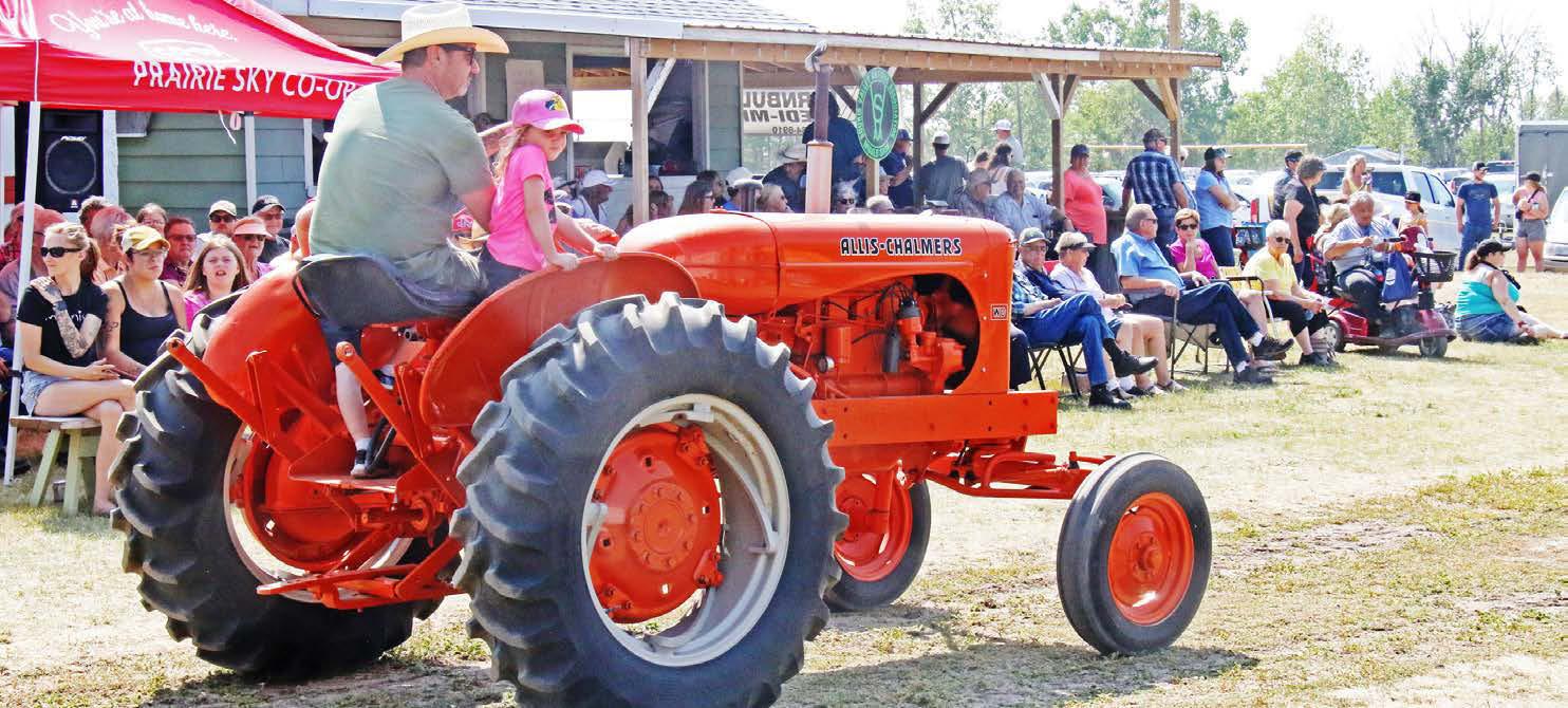 A father-daughter pair drove an Allis-Chalmers tractor by the spectators watching in front of the concession booth during the antique tractor parade on Saturday at Midale’s Pioneer Echoes Days. The tractor parade was followed by the