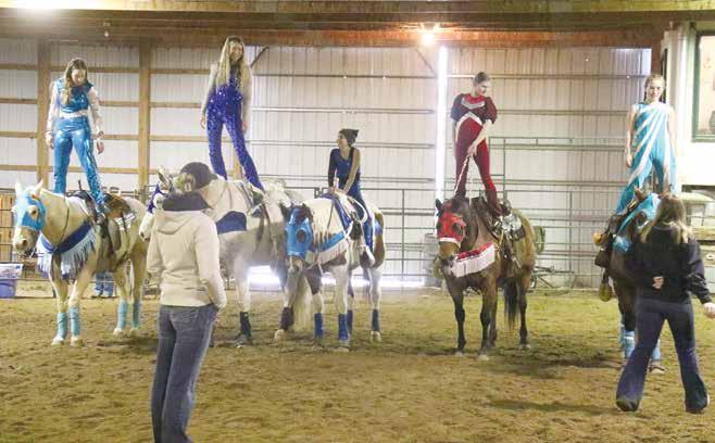 The Truco Trick Riders team, shown at a practice at the King farm at Corning, are ready to perform in Weyburn for the first time. The team includes Weyburn’s own Charlize Hallberg, Jordanna White, Kyla Dyer, Bailey Steeves and Shayda King.