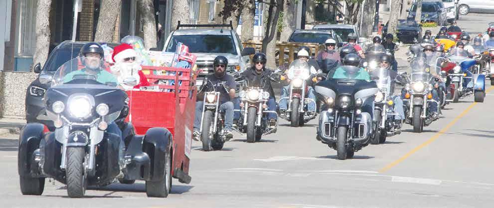 Santa Claus (aka Don Sealy) was driven by Laurie Norman as he led the Independent Riders’ annual Toy Run through Weyburn on Saturday afternoon. Here the riders are heading through the downtown before crossing the highway to the South Hill, ending at River Park, with toys collected for the Salvation Army.