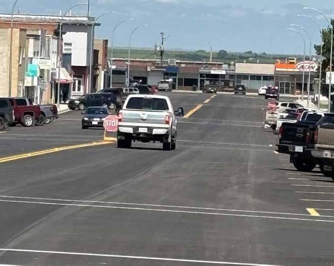 Traffic travelled down the newly reopened Main Street in Assiniboia.