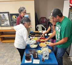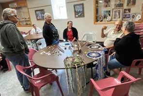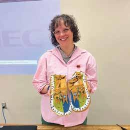 While thespeakersweretalking ,the guests enjoyedfresh baked Bannock with homemade jellyand coffee. Fried Bannock tacos, andpemmicanwas served forlunch.All the Bannock andpemmicanwas made by Jean Rivard LisaSlykhuisset up adisplay of herbeadworkthat explained themeaning behind some of herpiecesofart and thesignificance of them,while ever yone sataround and listened