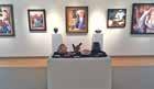 Local Métis Artist Emile Desautels with a display of his art.