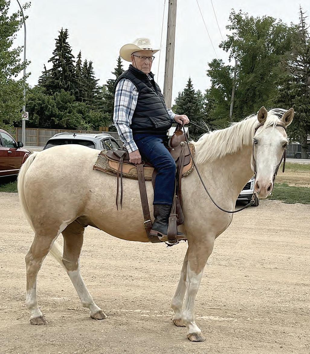 Over the weekend, Weyburn resident Lloyd Jacobs rode in to his 90th birthday celebration on a horse, owned by Garth Oberkirsch. Lloyd’s friends and family enjoyed seeing the cowboy ride again.