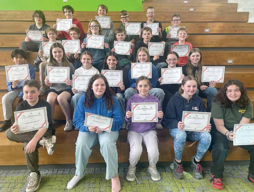 Pictured are 25 of the 30 LPES Grade 6 students who took part in the Scholastic Challenge. This is a nation-wide quiz which tests student knowledge in a variety of subject areas. This year, LPES had 21 students score above the national average. In the front row, from left, are Deacon S, Natalie B, Erica R, Anastasia W and Annalina S. In the second row, from left, are Makki P, Mariella M, Faber S., Zara C., Brynn H., Julia S. and Lily J. In the third row, from left, are Lincoln R., Logan P., Rhys F., Mason B., Charles C., Jaxon W. Back Row- Jace P., Jordan J., Liam H., Erik B., Tommy O. and Bentley M.
