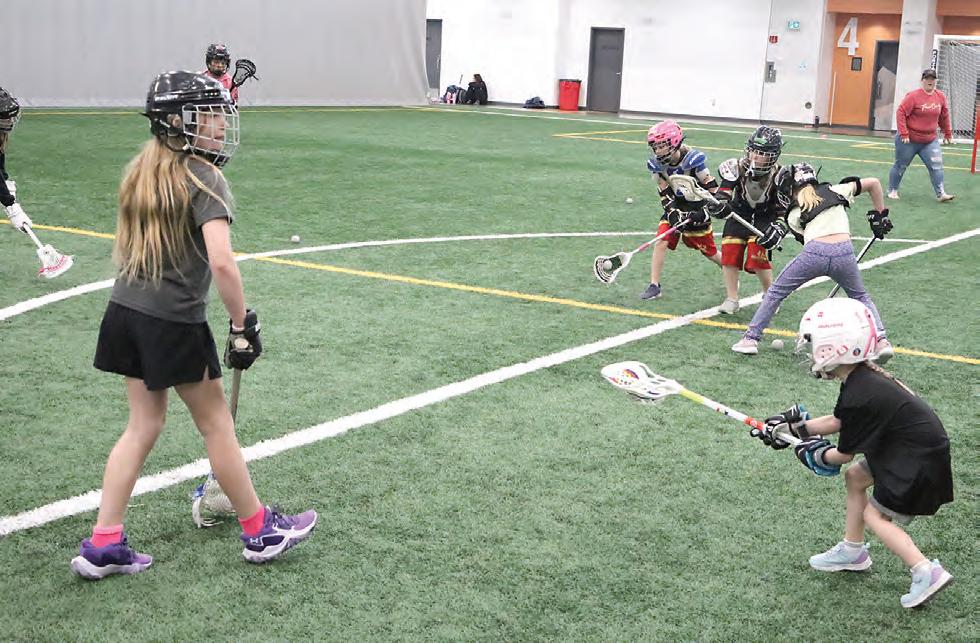 Lacrosse players, aged 10 and under, participated in a Try Lacrosse event with the Flatland Coyotes Lacrosse Club at the Credit Union Spark Centre on March 21. Photo by Sabrina Kraft/Weyburn Review