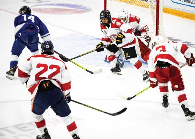 followed by two goals in the second period. Ryder Rommelaere scored a late second period goal for the Red Wings, assisted by Luke Schraeder and Dylan Westmann.