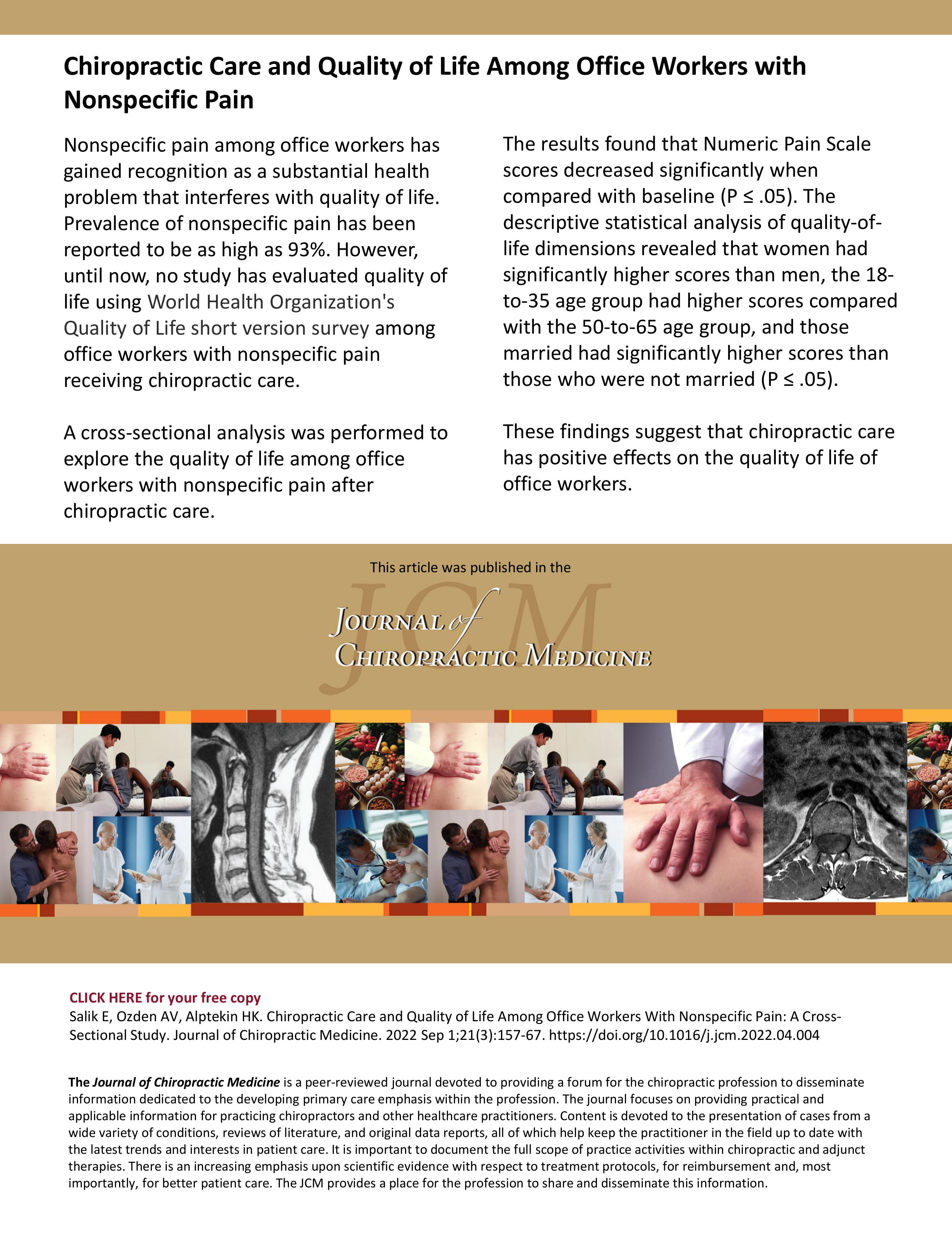 Chiropractic care normally has a positive impact on patients?ability to be physically active. Often treatment goals include improved motion or being able to perform work or daily activities.