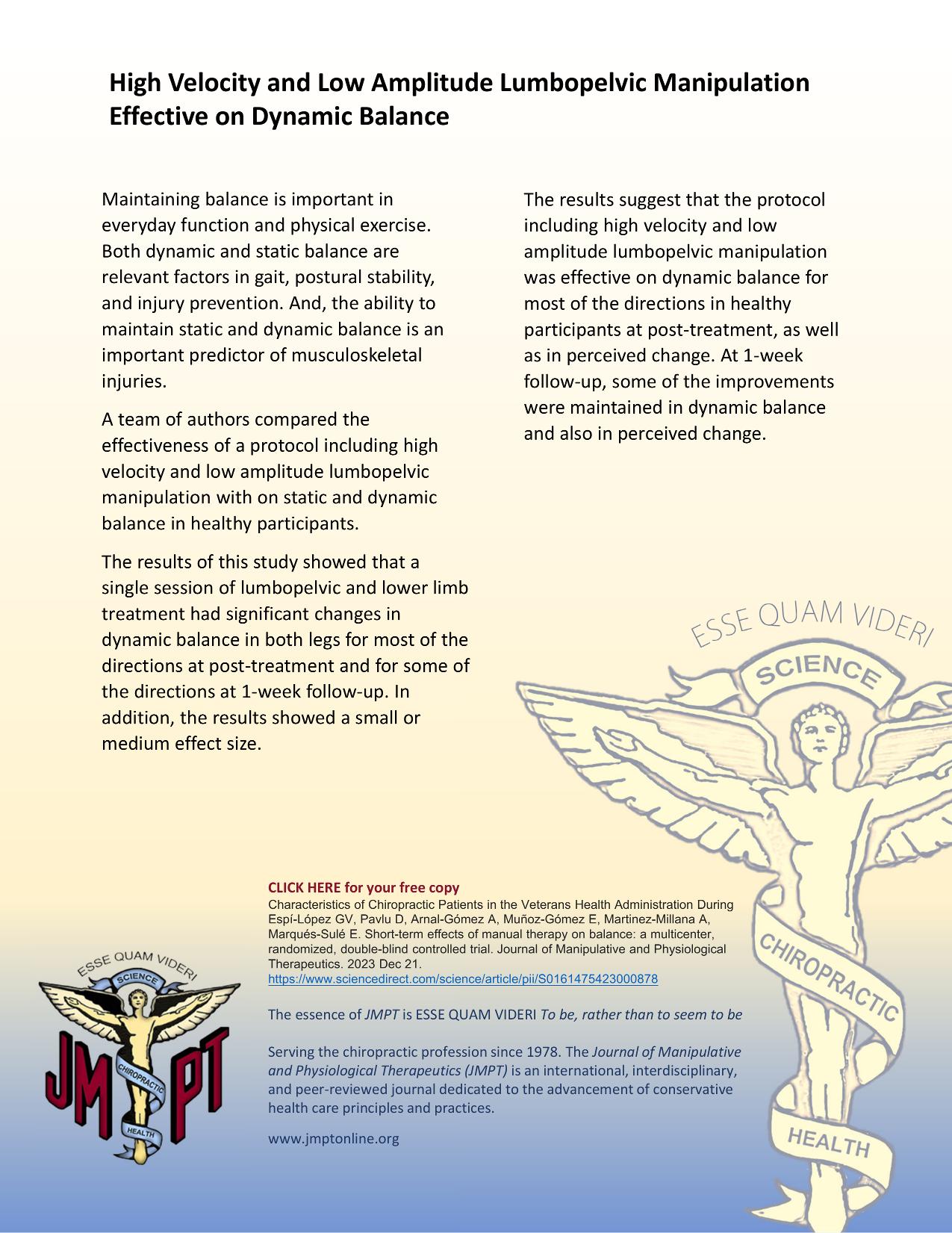 Recent publications in some of the world?s class-leading journals involving multidisciplinary authorships have pushed chiropractic forward in terms of research and evidence-based practice
