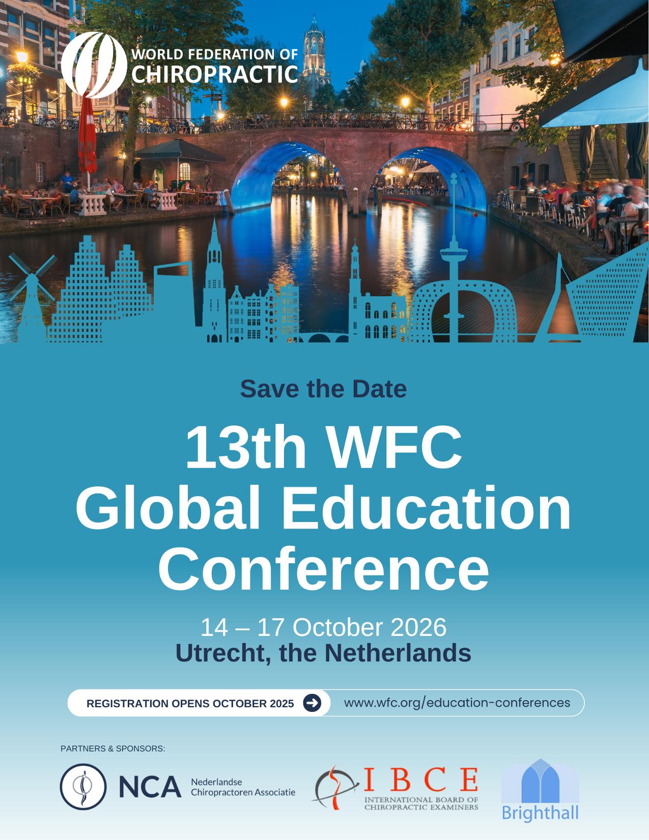 A key highlight was the Board?s commitment to planning the 13t h Global Educat ion Conference 2026 in Ut recht , Net herlands The Board underscored the importance of convening educators, regulators, and leaders to shape the future of chiropractic education. Planning also advanced for the WFC 2027 19t h Biennial Congress in Vancouver, reinforcing the Federation?s commitment to global convening and knowledge exchange